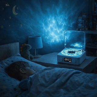 Transformá tu espacio con el Parlante con Proyección de Olas Marinas Tipo Vinilo. Disfrutá de sonido envolvente y un espectáculo visual relajante, todo en un solo dispositivo.
